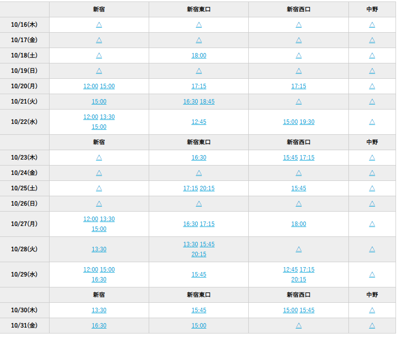 無料体験の申し込みフォームでは校舎ごとに空いている時間が細かく記載してあるので、希望日が探しやすくなっています。△の箇所は、希望校舎や第1~3までの希望日時を記載しリクエストすることができ、その後日程調整の連絡がくるようです。
