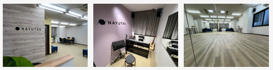 【ナユタス】ボイストレーニングをはじめ、楽器やダンスなどプロ講師から指導を受けることができます。レッスンは全てマンツーマンでおこなわれており、数あるコースの中から目的に合わせてレッスンを受けられる環境が魅力です。複数のコースを組み合わせて受講もできます。