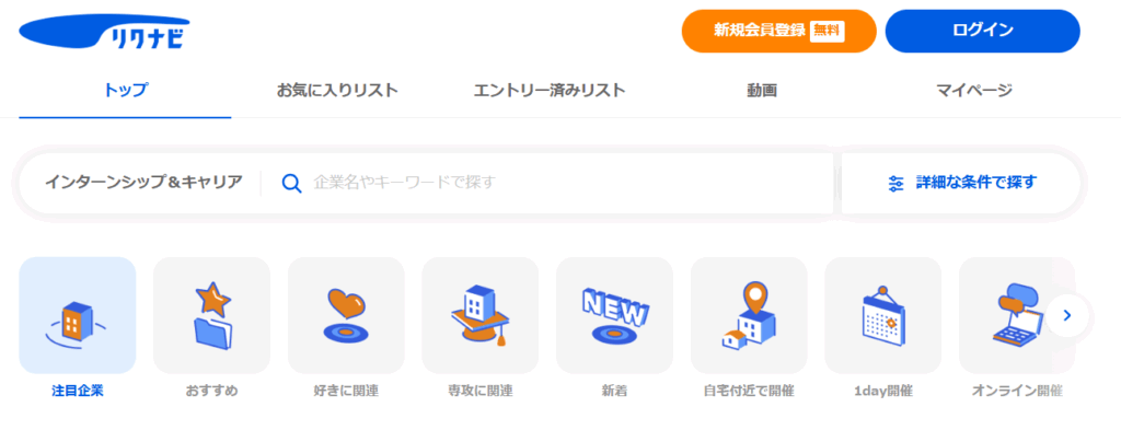 インターンシップおすすめのサービス2:リクナビ
