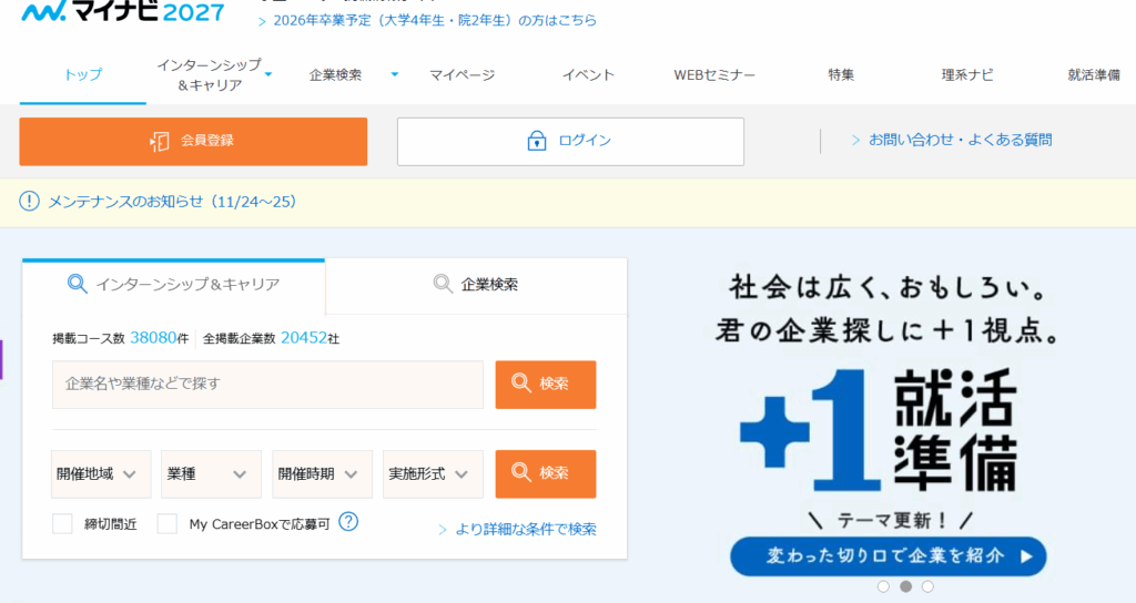インターンシップおすすめのサービス1:マイナビ
